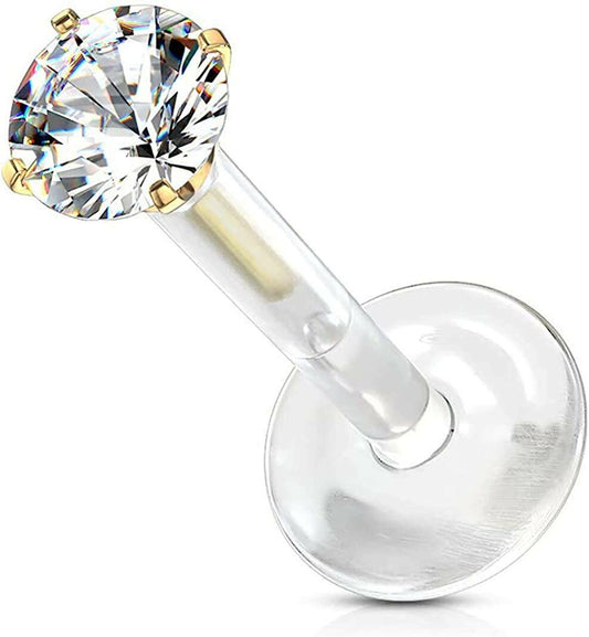 Surgical Steel Round CZ Top Push In Bio Flex Flat Back Studs for Labret Monroe Ear Cartilage