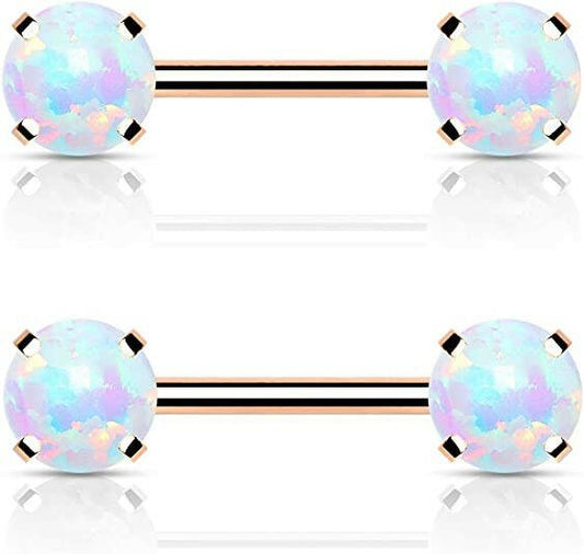 Surgical Steel Threadless Round Opal Ends Nipple Barbell Rings
