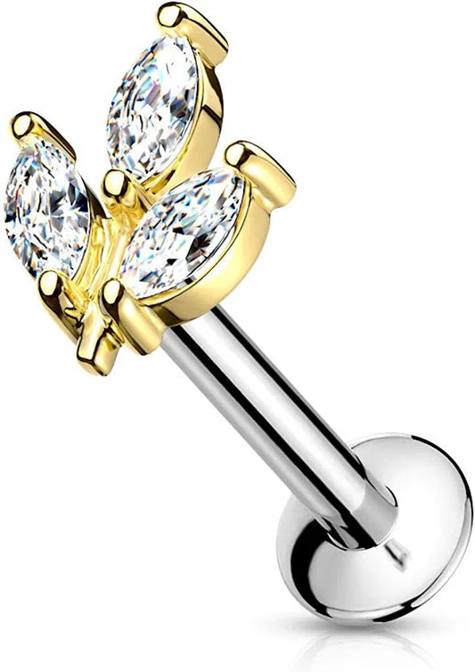 Surgical Steel Threadless Top 3 Marquise CZ Push-in Style Labret Flat Back Studs