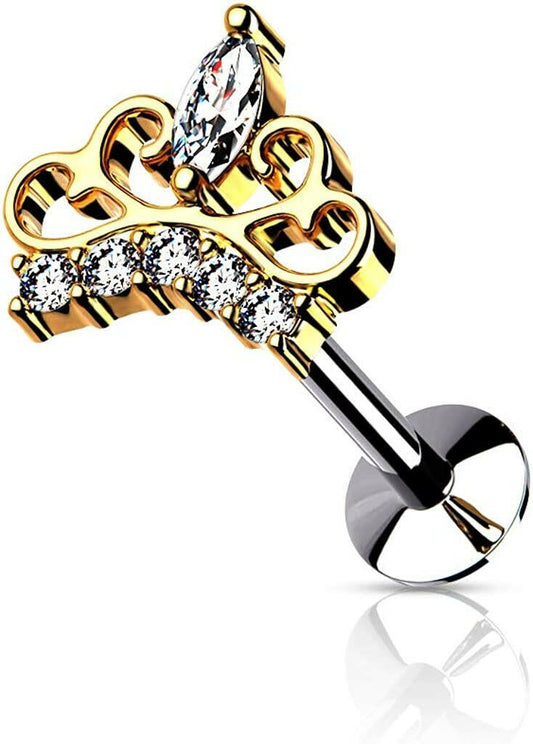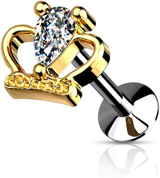 Surgical Steel Threadless Top CZ Crown Push in Style Labret Flat Back Nose Studs