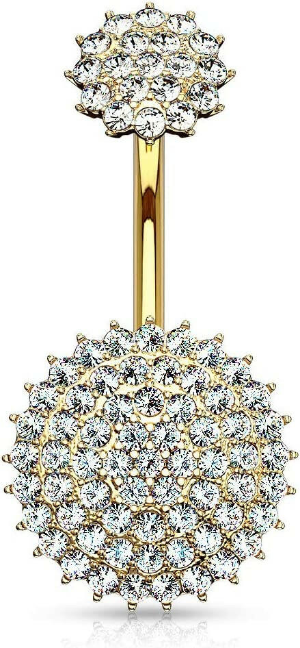Surgical Steel Top CZ Paved Round Shields Belly Navel Ring