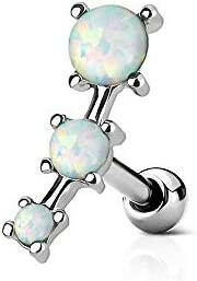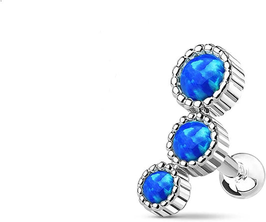 Surgical Steel Triple Round Opal Cartilage Tragus Barbell Studs