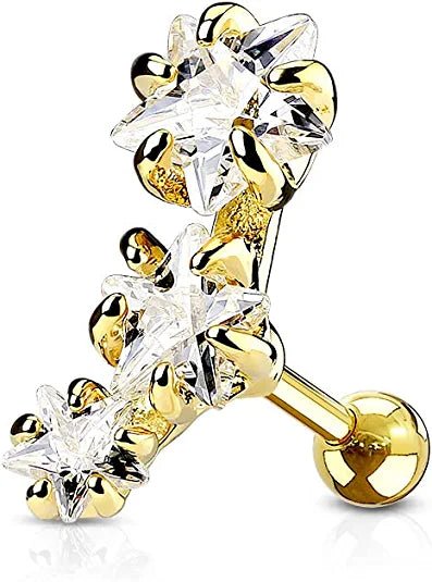 Surgical Steel Triple Star CZ Cartilage Tragus Barbells