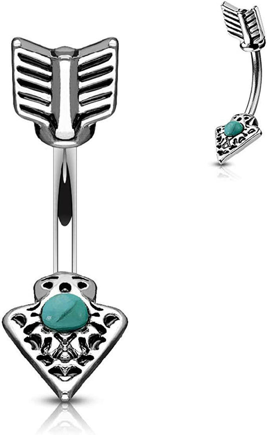 Surgical Steel Turquoise Tribal Arrow Belly Navel Ring