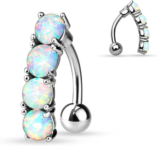 Surgical Steel Vertical Drop Top Down Opal Belly Navel Ring
