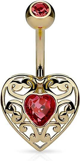 Surgical Steel Vintage Filigree Heart with Heart Crystal Center Belly Navel Ring