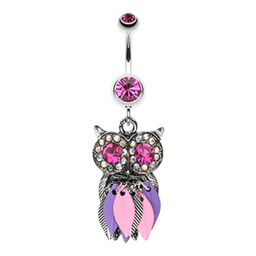 Vibrant Owl Feather Sparkle Belly Button Ring