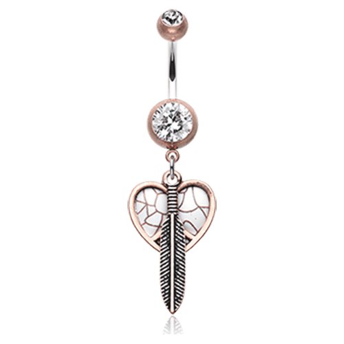Vintage Boho Peace Heart with Feather Belly Button Ring