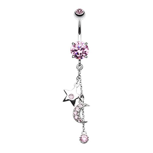 Wishing Star and Moon Cubic Zirconia Belly Button Ring