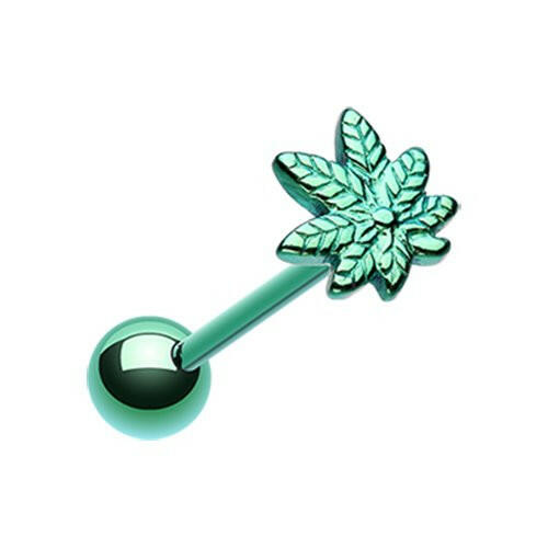 Colorline PVD Leaf Top Steel Barbell Tongue Ring