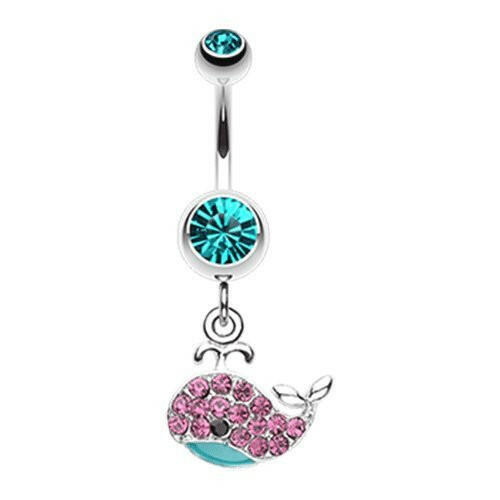 Adorable Whale Multi-Gem Belly Button Ring