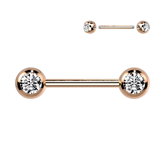 Double CZ Titanium IP Over 316L Stainless Steel Nipple Bar