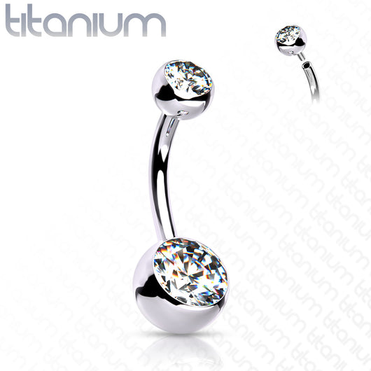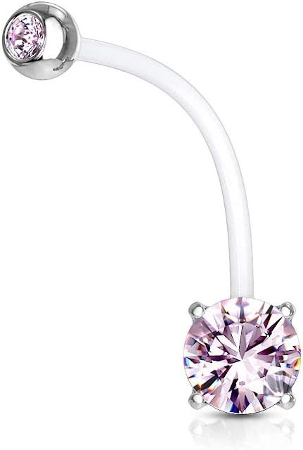 Double Jeweled Prong Set Round CZ Pregnancy Belly Rings Bioflex with 316L Surgical Steel Balls