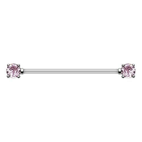 Double Prong Cubic Zirconia Gem Industrial Barbell