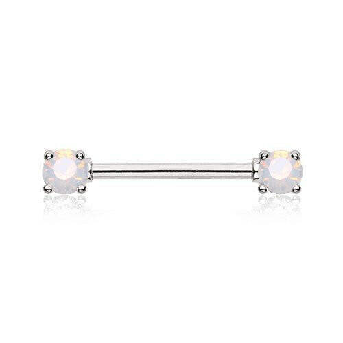 Double Prong Opal Gem Nipple Barbell Ring