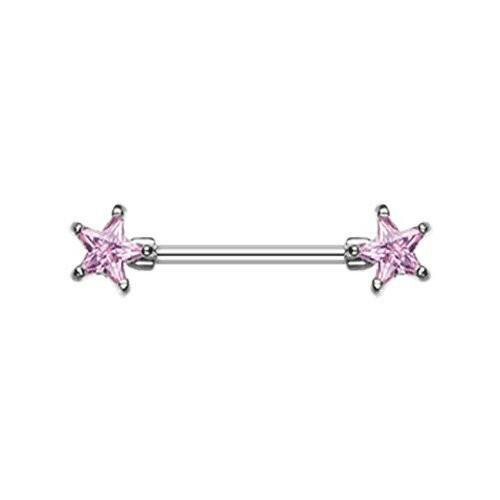 Double Star Gem Nipple Barbell Ring