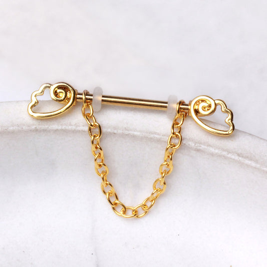 Gold Plated Chained Double Clicker Rings Cartilage Earring