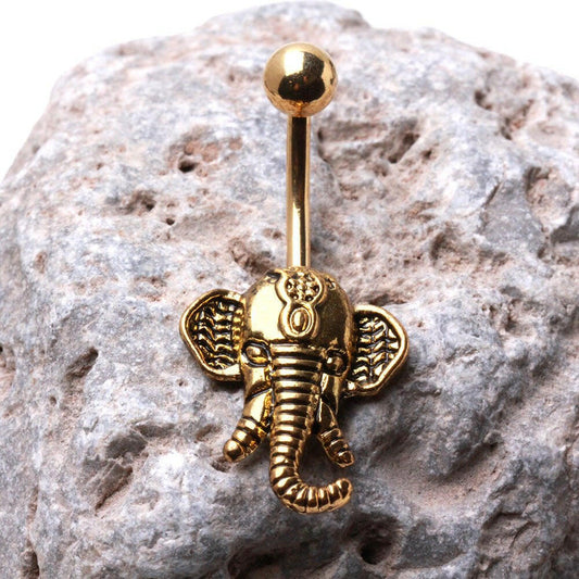 Gold Plated Decorated Elephant Navel Ring