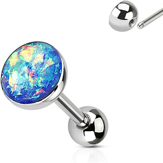 Synthetic Moonstone Illumilating Barbell Tongue Ring