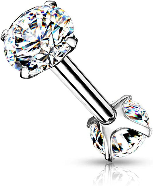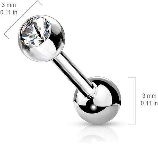 Surgical Steel Internally Threaded CZ Bezel Balls on Both Sides Cartilage Barbells