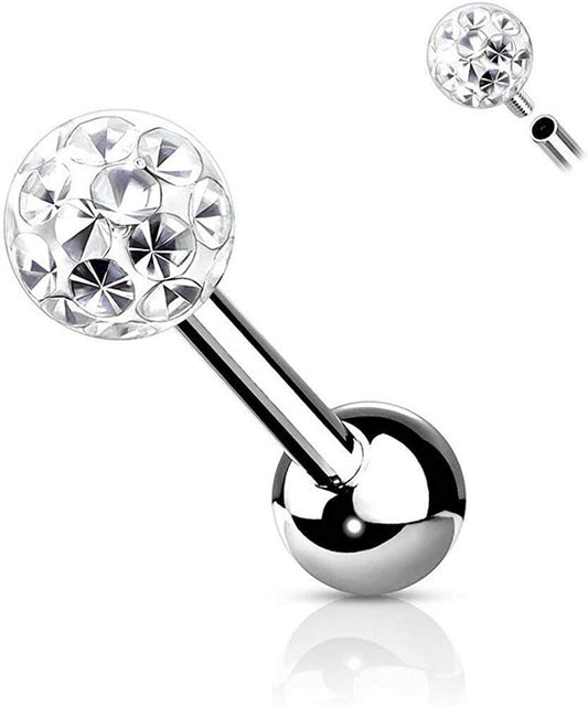 Surgical Steel Internally Threaded Epoxy Covered Crystal Paved Ball Top Cartilage Barbells
