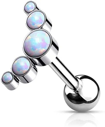 Titanium Internally Threaded 5-Bezel Round Opal Top Cartilage Barbell