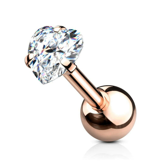 Prong Set Heart CZ 316L Surgical Steel Cartilage, Tragus Barbell Studs