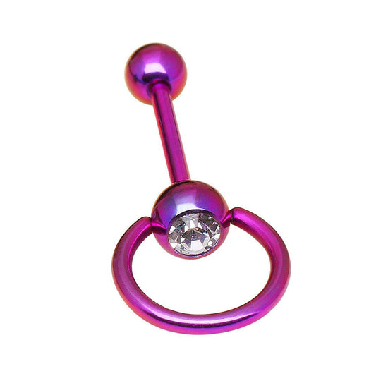 PVD Plated 316L Barbell with One Slave Ring Gemmed Ball