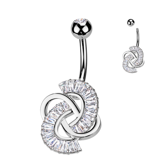 Surgical Steel Baguette CZ Knot Belly Button Navel Ring