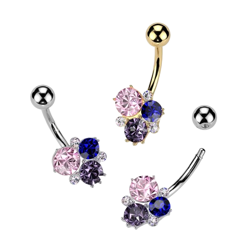 Triple Marquise CZ Flowers Dangle with Gemmed Top Surgical Steel Belly Button Navel Rings