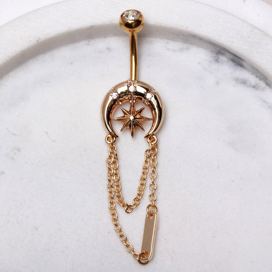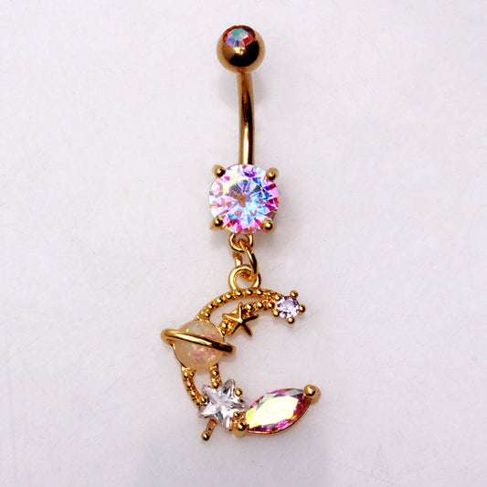 Gold Plated Galaxy Moon and Star Dangle Navel Ring