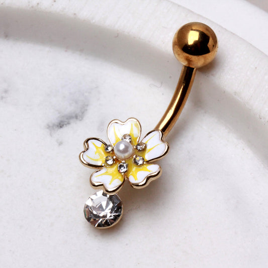 316L Stainless Steel White Flower Butterfly Dangle Navel Ring