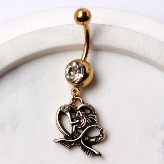 Gold Plated Mermaid Heart Dangle Navel Ring