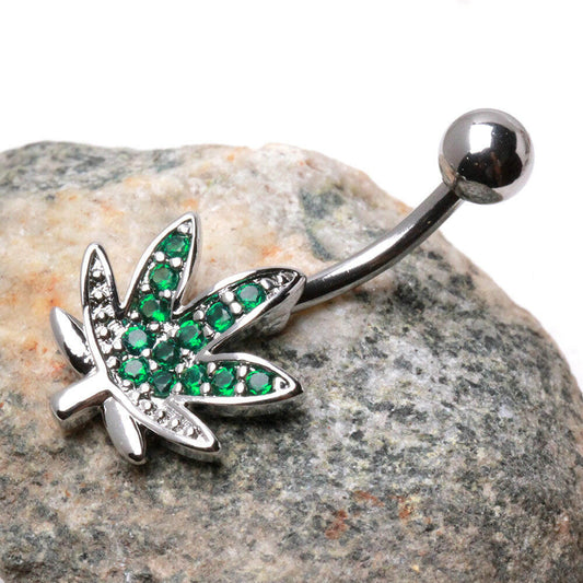 Stainless Steel Glittering Pot Leaf Navel Ring