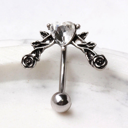 Stainless Steel Heart and Roses Top Down Navel Ring
