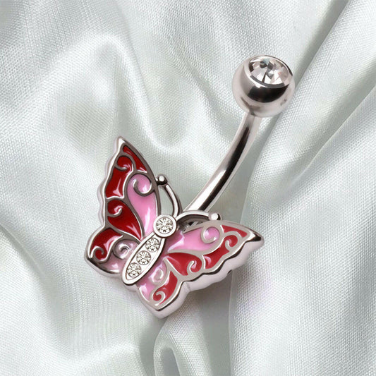 Stainless Steel Gothic Butterfly Dangle Navel Ring