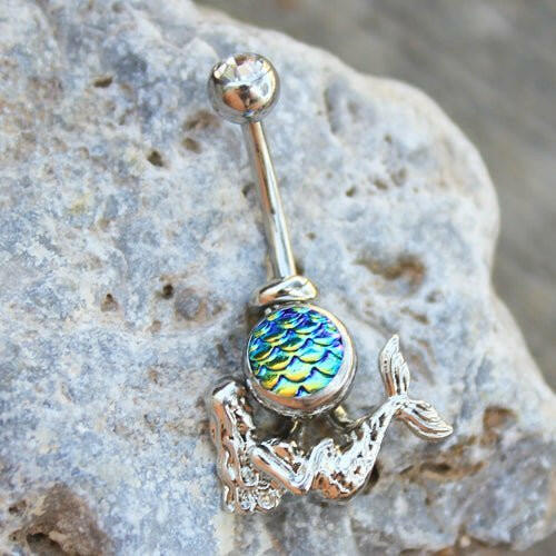 Stainless Steel 2-in-1 Fish Scale Cabochon Mermaid Navel Ring