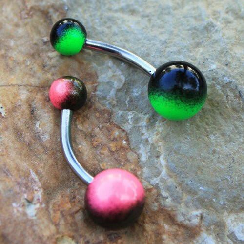 Stainless Steel Navel Ring with UV Acrylic Paint Splatter Balls