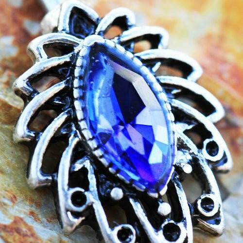 Stainless Steel Tropical Leaf with Sapphire Blue CZ Navel Ring