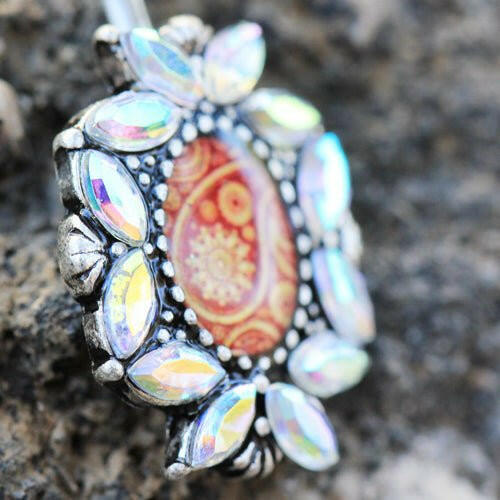 Stainless Steel Ornate Jeweled Teardrop Navel Ring