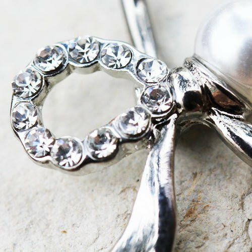 Stainless Steel Gem and Pearl Ribbon Navel Ring