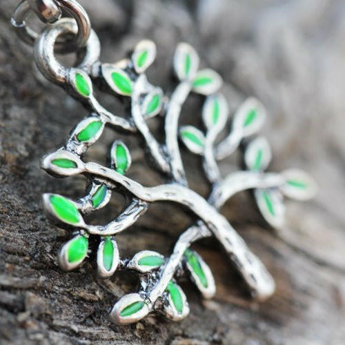Stainless Steel Green Tree of Life Dangle Navel Ring