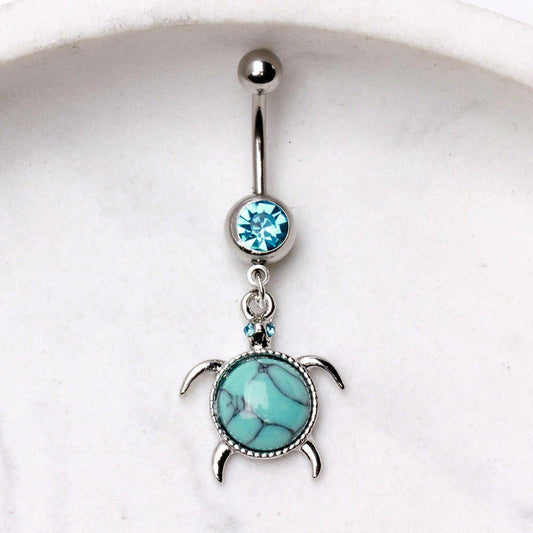 Stainless Steel Turquoise Turtle Dangle Navel Ring