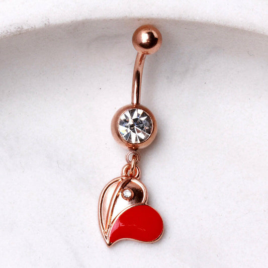 Red Floating Heart Dangle Rose Gold Plated Navel Ring