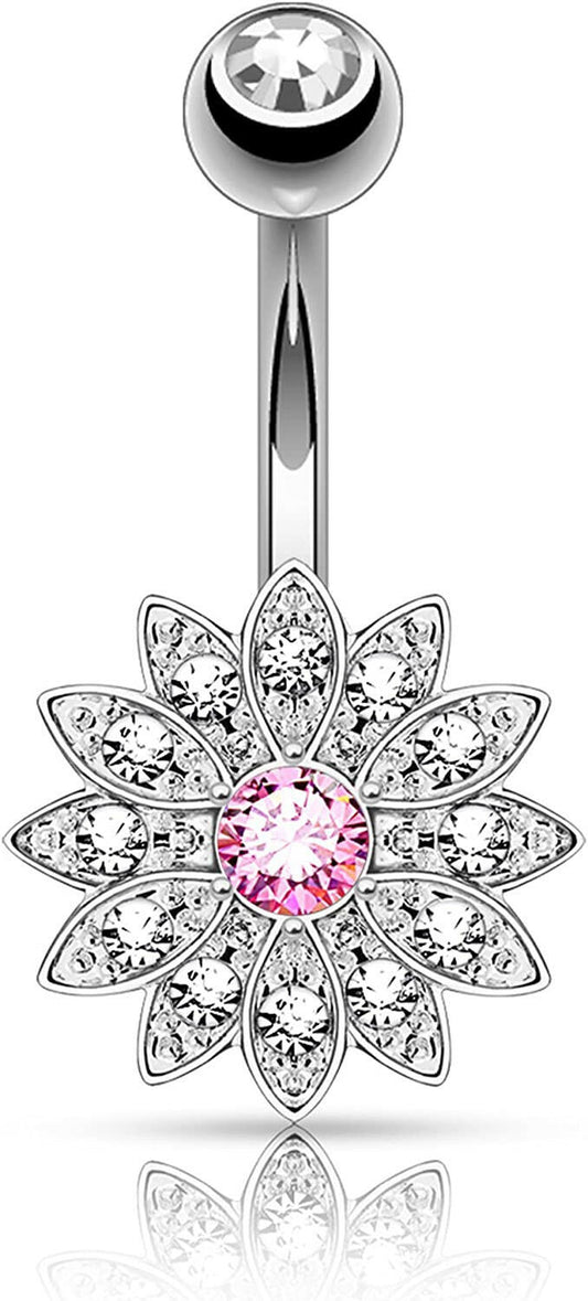 Surgical Steel Petite Crystal Paved Flower with Crystal Center Belly Navel Ring