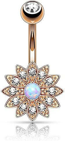 Surgical Steel Petite Crystal Paved Flower with Opal Center Belly Navel Ring
