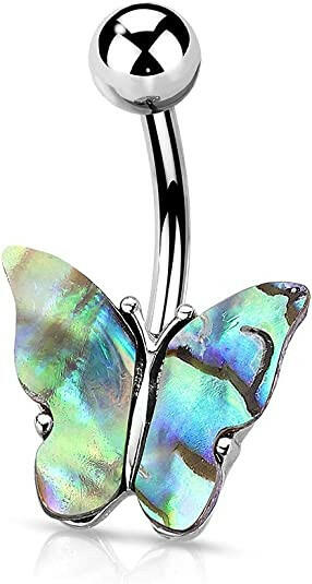 Surgical Steel Abalone Shell Covered Butterfly Belly Navel Ring