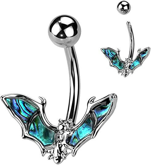 Surgical Steel Bat with Abalone Shell and Wings Belly Navel Ring