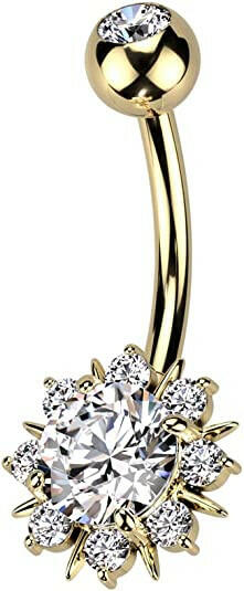 Surgical Steel Belly Ring Sunburst-Shaped with CZ Belly Navel Ring