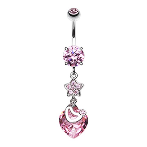 Star Heart Gem Sparkle Cubic Zirconia Belly Button Ring
